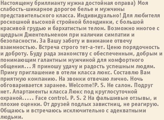 Шлюха Наташа пишет о себе: