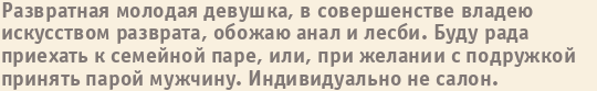 Множество очаровательных проституток и путан ждет Вас в гости. Займитесь сексом с ними и окунитесь в мир безумной любви и страсти, а наш сайт поможет Вам в этом!