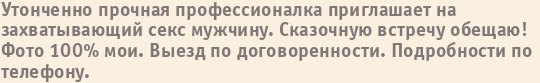 Множество очаровательных проституток и путан ждет Вас в гости. Займитесь сексом с ними и окунитесь в мир безумной любви и страсти, а наш сайт поможет Вам в этом!