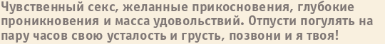 Множество очаровательных проституток и путан ждет Вас в гости. Займитесь сексом с ними и окунитесь в мир безумной любви и страсти, а наш сайт поможет Вам в этом!