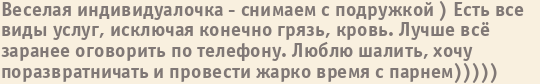 Множество очаровательных проституток и путан ждет Вас в гости. Займитесь сексом с ними и окунитесь в мир безумной любви и страсти, а наш сайт поможет Вам в этом!