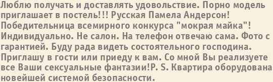 Множество очаровательных проституток и путан ждет Вас в гости. Займитесь сексом с ними и окунитесь в мир безумной любви и страсти, а наш сайт поможет Вам в этом!