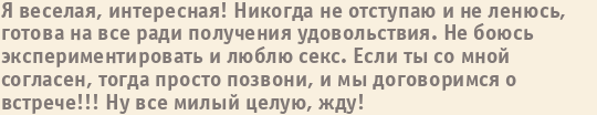 Множество очаровательных проституток и путан ждет Вас в гости. Займитесь сексом с ними и окунитесь в мир безумной любви и страсти, а наш сайт поможет Вам в этом!