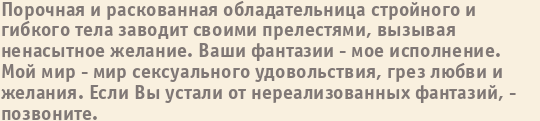 Множество очаровательных проституток и путан ждет Вас в гости. Займитесь сексом с ними и окунитесь в мир безумной любви и страсти, а наш сайт поможет Вам в этом!