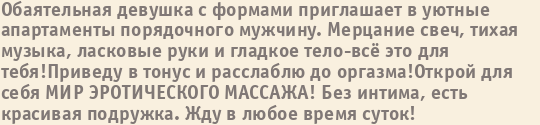 Множество очаровательных проституток и путан ждет Вас в гости. Займитесь сексом с ними и окунитесь в мир безумной любви и страсти, а наш сайт поможет Вам в этом!