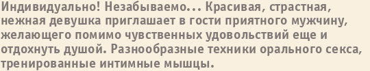 Множество очаровательных проституток и путан ждет Вас в гости. Займитесь сексом с ними и окунитесь в мир безумной любви и страсти, а наш сайт поможет Вам в этом!