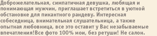 Множество очаровательных проституток и путан ждет Вас в гости. Займитесь сексом с ними и окунитесь в мир безумной любви и страсти, а наш сайт поможет Вам в этом!