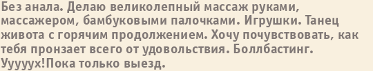 Шлюха Наталья пишет о себе: