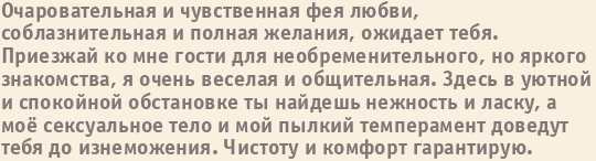Множество очаровательных проституток и путан ждет Вас в гости. Займитесь сексом с ними и окунитесь в мир безумной любви и страсти, а наш сайт поможет Вам в этом!