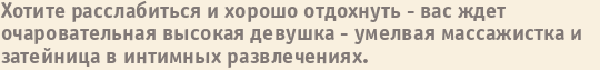 Множество очаровательных проституток и путан ждет Вас в гости. Займитесь сексом с ними и окунитесь в мир безумной любви и страсти, а наш сайт поможет Вам в этом!