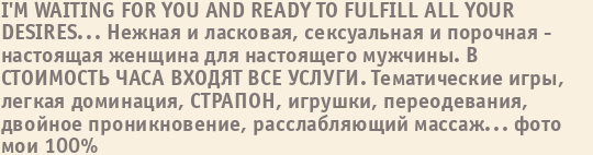 Множество очаровательных проституток и путан ждет Вас в гости. Займитесь сексом с ними и окунитесь в мир безумной любви и страсти, а наш сайт поможет Вам в этом!
