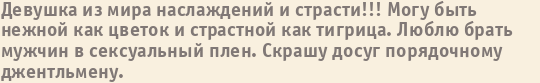 Множество очаровательных проституток и путан ждет Вас в гости. Займитесь сексом с ними и окунитесь в мир безумной любви и страсти, а наш сайт поможет Вам в этом!