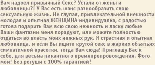Множество очаровательных проституток и путан ждет Вас в гости. Займитесь сексом с ними и окунитесь в мир безумной любви и страсти, а наш сайт поможет Вам в этом!