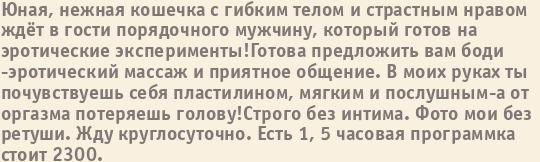 Множество очаровательных проституток и путан ждет Вас в гости. Займитесь сексом с ними и окунитесь в мир безумной любви и страсти, а наш сайт поможет Вам в этом!