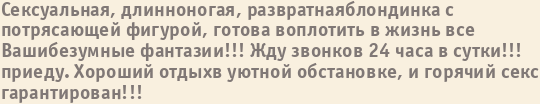 Множество очаровательных проституток и путан ждет Вас в гости. Займитесь сексом с ними и окунитесь в мир безумной любви и страсти, а наш сайт поможет Вам в этом!