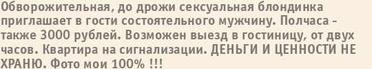 Множество очаровательных проституток и путан ждет Вас в гости. Займитесь сексом с ними и окунитесь в мир безумной любви и страсти, а наш сайт поможет Вам в этом!