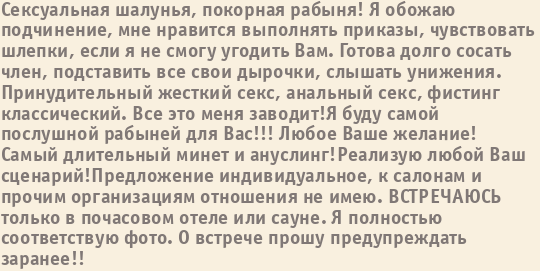 Множество очаровательных проституток и путан ждет Вас в гости. Займитесь сексом с ними и окунитесь в мир безумной любви и страсти, а наш сайт поможет Вам в этом!