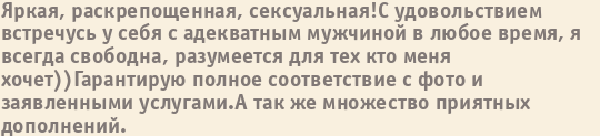 Шлюха Кристина пишет о себе: