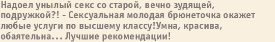 Множество очаровательных проституток и путан ждет Вас в гости. Займитесь сексом с ними и окунитесь в мир безумной любви и страсти, а наш сайт поможет Вам в этом!