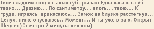 Множество очаровательных проституток и путан ждет Вас в гости. Займитесь сексом с ними и окунитесь в мир безумной любви и страсти, а наш сайт поможет Вам в этом!