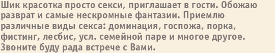 Множество очаровательных проституток и путан ждет Вас в гости. Займитесь сексом с ними и окунитесь в мир безумной любви и страсти, а наш сайт поможет Вам в этом!