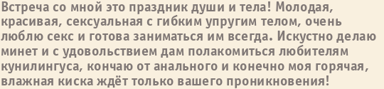 Множество очаровательных проституток и путан ждет Вас в гости. Займитесь сексом с ними и окунитесь в мир безумной любви и страсти, а наш сайт поможет Вам в этом!
