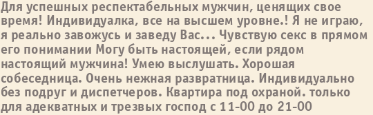 Множество очаровательных проституток и путан ждет Вас в гости. Займитесь сексом с ними и окунитесь в мир безумной любви и страсти, а наш сайт поможет Вам в этом!