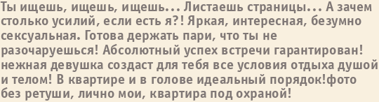 Множество очаровательных проституток и путан ждет Вас в гости. Займитесь сексом с ними и окунитесь в мир безумной любви и страсти, а наш сайт поможет Вам в этом!