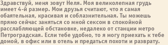 Множество очаровательных проституток и путан ждет Вас в гости. Займитесь сексом с ними и окунитесь в мир безумной любви и страсти, а наш сайт поможет Вам в этом!