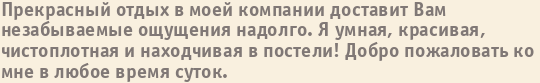 Множество очаровательных проституток и путан ждет Вас в гости. Займитесь сексом с ними и окунитесь в мир безумной любви и страсти, а наш сайт поможет Вам в этом!