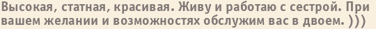 Множество очаровательных проституток и путан ждет Вас в гости. Займитесь сексом с ними и окунитесь в мир безумной любви и страсти, а наш сайт поможет Вам в этом!