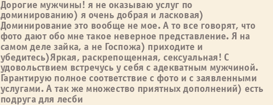 Шлюха Ксения пишет о себе: