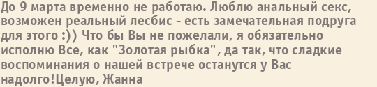 Множество очаровательных проституток и путан ждет Вас в гости. Займитесь сексом с ними и окунитесь в мир безумной любви и страсти, а наш сайт поможет Вам в этом!