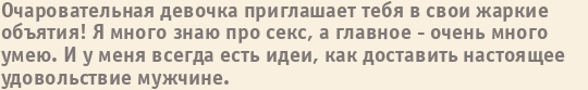 Множество очаровательных проституток и путан ждет Вас в гости. Займитесь сексом с ними и окунитесь в мир безумной любви и страсти, а наш сайт поможет Вам в этом!