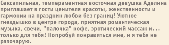 Множество очаровательных проституток и путан ждет Вас в гости. Займитесь сексом с ними и окунитесь в мир безумной любви и страсти, а наш сайт поможет Вам в этом!