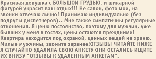 Множество очаровательных проституток и путан ждет Вас в гости. Займитесь сексом с ними и окунитесь в мир безумной любви и страсти, а наш сайт поможет Вам в этом!