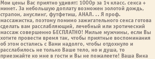 Множество очаровательных проституток и путан ждет Вас в гости. Займитесь сексом с ними и окунитесь в мир безумной любви и страсти, а наш сайт поможет Вам в этом!