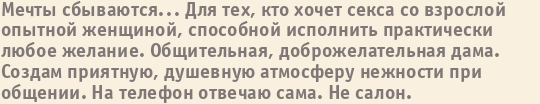 Шлюха Татьяна пишет о себе: