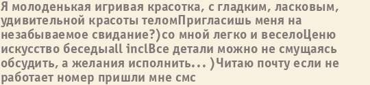 Шлюха Таня пишет о себе: