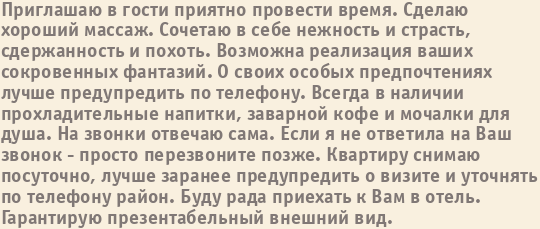 Множество очаровательных проституток и путан ждет Вас в гости. Займитесь сексом с ними и окунитесь в мир безумной любви и страсти, а наш сайт поможет Вам в этом!