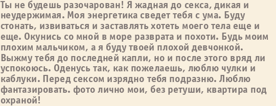 Множество очаровательных проституток и путан ждет Вас в гости. Займитесь сексом с ними и окунитесь в мир безумной любви и страсти, а наш сайт поможет Вам в этом!