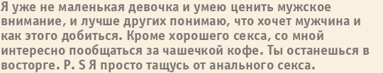 Шлюха Таня пишет о себе: