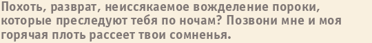Множество очаровательных проституток и путан ждет Вас в гости. Займитесь сексом с ними и окунитесь в мир безумной любви и страсти, а наш сайт поможет Вам в этом!