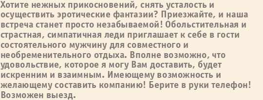 Множество очаровательных проституток и путан ждет Вас в гости. Займитесь сексом с ними и окунитесь в мир безумной любви и страсти, а наш сайт поможет Вам в этом!