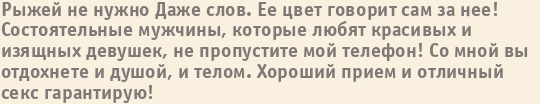 Шлюха Дарья пишет о себе: