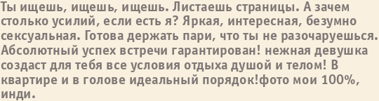 Множество очаровательных проституток и путан ждет Вас в гости. Займитесь сексом с ними и окунитесь в мир безумной любви и страсти, а наш сайт поможет Вам в этом!