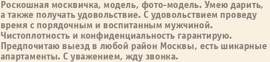 Шлюха Алла пишет о себе: