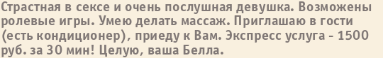 Множество очаровательных проституток и путан ждет Вас в гости. Займитесь сексом с ними и окунитесь в мир безумной любви и страсти, а наш сайт поможет Вам в этом!