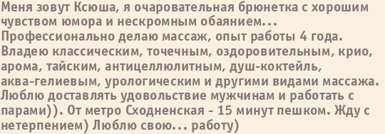 Шлюха Даша пишет о себе: