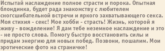 Множество очаровательных проституток и путан ждет Вас в гости. Займитесь сексом с ними и окунитесь в мир безумной любви и страсти, а наш сайт поможет Вам в этом!